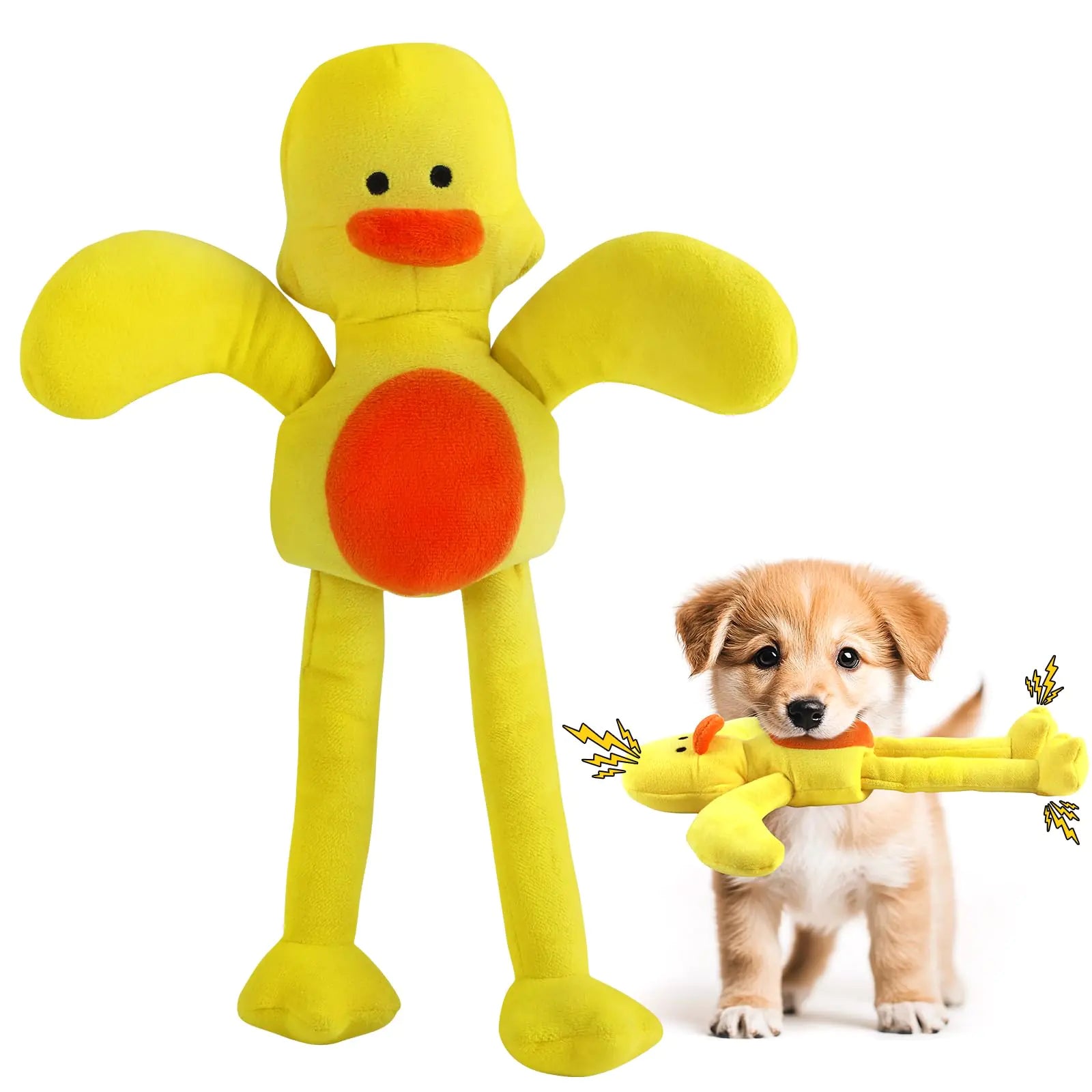 ["【Squeaky & Crinkle】: Our squeaky dog toys have built-in squeaker and large crinkle paper inside the body making delightful sound and attracting your dogs attention as he paw or bite the puppy toys. Your pups will keep entertained for longer hours as they exploring the sound. Great interactive dog toys to keep them busy and reduce anxiety" "【Interactive Toys & Improve Relationship】 Playtime keeps dogs physically fit and mentally sharp. Squeaky dog toy is a great tool for getting your dogs attention!. Our plush dog toy can be tossed so you can train them efficiently. This tur of war dog toys positively enhance the relationship between you and your dogs. Enjoy more fun playing with your furry friend" 【Plush Dog Toys】This dog toy is made of upgraded soft pineapple cotton thicker fabric and stronger stiching than any plush dog toys and soft cotton for comfortable touch for dogs without hurting gums and mouths without getting easily broken.Great as puppy teething toys "【Duck Dog Toys】: This duck plush dog toy with bright color is an adorable character that will attract your dog’s interest and keep them entertained. Your dog will have hours of fun with these cute dog toys. The ducks arms and legs can be pulled at will making it an interactive toy for owners and dogs or a tug-of-war toy between dogs" 【Warm Tips about Plush Dog Toys】Our puppy toys can be machine washable and easy to clean. We recommend playing under supervision.If the plush toy is torn please take care to clean the stuffing inside promptly.]