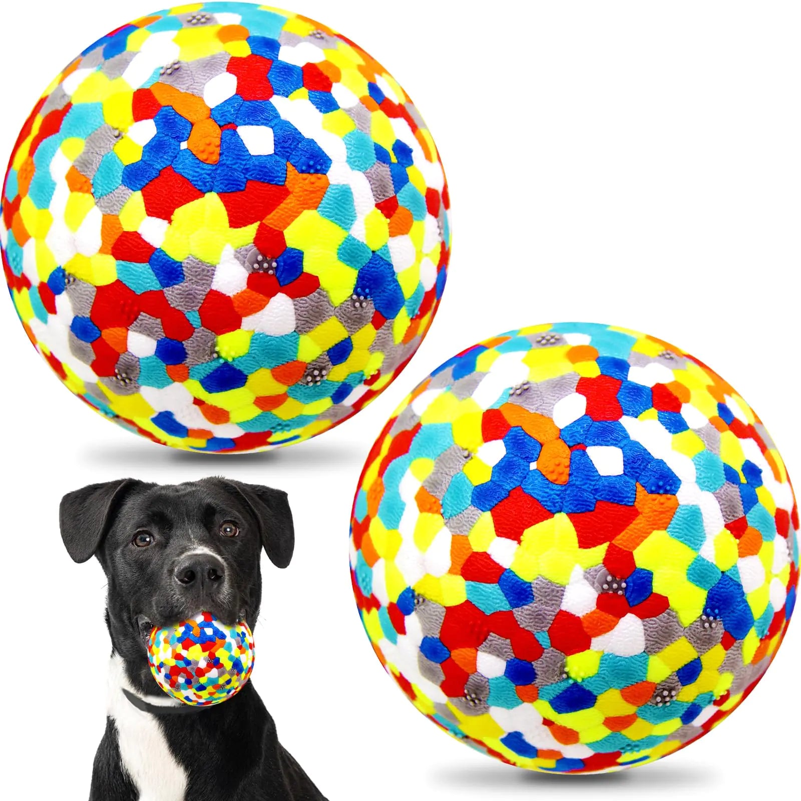 [TOUGH DOG TOYS FOR AGGRESSIVE CHEWERS: The large dog toys ball is solid chewproof and good bouncy. Even if a car tire happens to roll over it for a short time the dog ball will quickly rebound. Designed especially for very energetic dogs. The indestrucible dog toy ball can withstand strong impacts very sturdy best aggressive chewers dog toys for large dogs such as Golden Retrievers Boston Terrier French bulldog Labrador Husky and Doberman making it perfect toy for medium to large breeds "IDEAL INDOOR AND OUTDOOR DOG FETCH TOYS: Dog toys ball has excellent bouncy easy washable. Its surface is designed with a unique surface texture and three dimensional convex point design can helps to clean dogs teeth and massage their gums. Dog toys for large dogs is lightweight and can float on water convenient for dogs to play in the swimming pool or at the seaside ideal big dog toys in hot summer" INTERACTIVE DOG TOY BALLS: Our tough dog toys its lightweight (about 2.3 ounces/65 g) makes it easy to throw the ball further and let dogs enjoy chasing frolicking. It has a great bounce to it so you can play exciting fetch or other interactive games with your dogs in your casual time dog toys to keep them busy and enhance the relationship between you and your dog SAFE ETPU MATERIALS DOG BALLS:Our indestructible dog toy are made of Upgraded ETPU material safe and tough. This dog balls for aggressive chewers measures approximately 3 inche in diameter which is a safe size to prevent accidental swallowing. This size makes the ball easy for dogs to chase chew and pick up. Thanks to its practical size the ball is easy to carry around and play with your dog anytime anywhere BEST GIFTS FOR YOUR DOG: This big dog toys ball will be one of the best gifts for your furry friends. From fun indoor activities to outdoor play with your dog just one of dog ball is enough to give your dog more fun and exercise in his daily life. Tennis balls for dogs can help your dog relieve anxiety daily training release energy get happy]