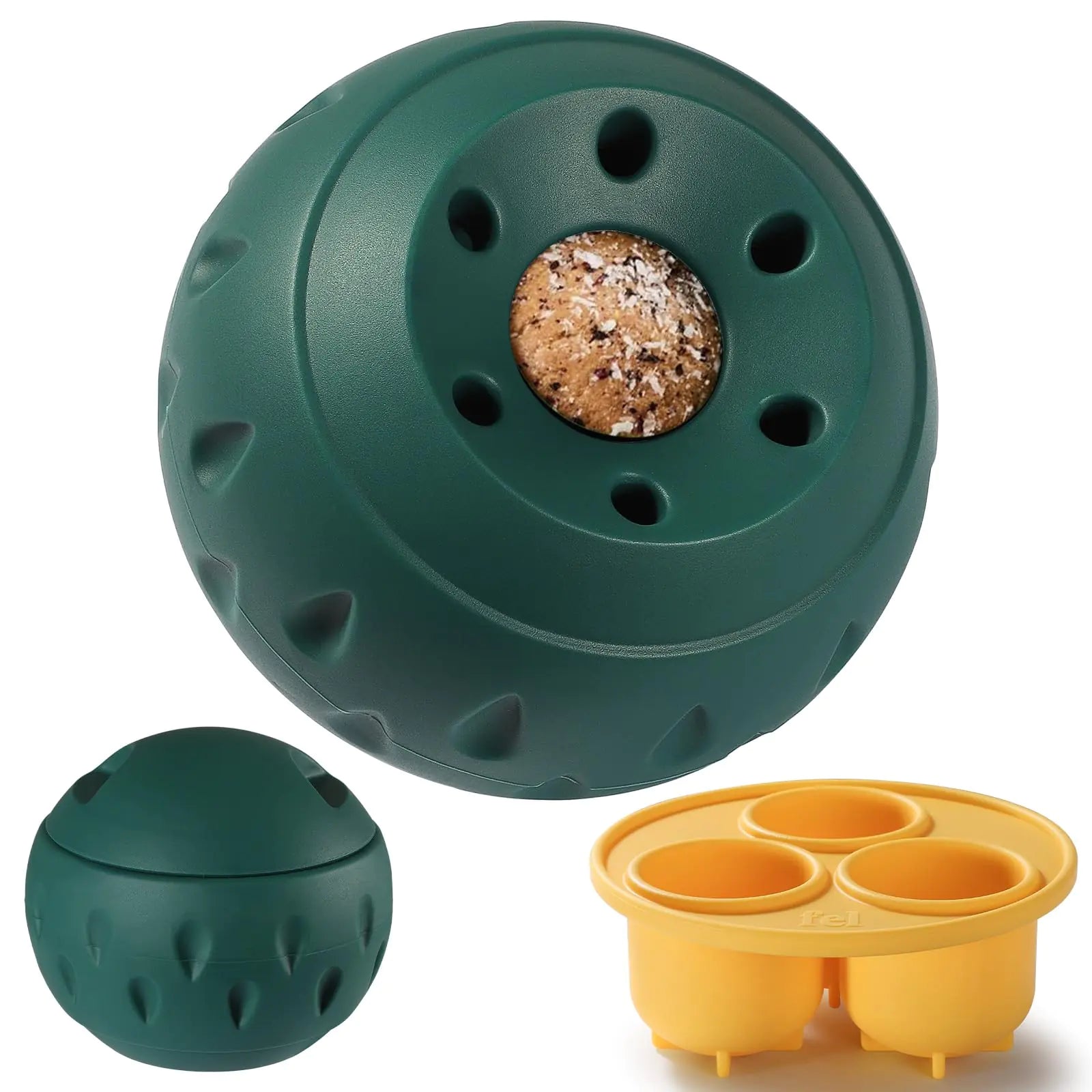 [★【Freezable Fillable Dog Treat Toy】No more messy counters or sticky hands. Dog chew toy opens in the middle for effortless filling cleaning and reuse ensuring a hygienic play experience. Just unscrew the lid and pop the frozen treats into the toy for delicious and long-lasting dog play. After playing rinse the dog toy or toss it in the dishwasher for quick and easy cleaning "👍【Sturdy & Safety Chew Toy】Prioritize your dogs safety during playtime unlike bones or chews that pose risks of splintering and choking. Treat dispensing dog toy is made of natural rubber thickened and weighted design long-lasting safe and sturdy bite-resistant enough to withstand the wear and tear of daily use. Ideal for small medium large dogs" 🍖【Interactive Dog Toy】The popsicle mold is made of food-grade silicone allowing you to easily create nutritious popsicles or frozen treats. You can either smear soft foods like peanut butter yogurt pumpkin purée or cottage cheese on the inside of this lid and freeze for 1 to 2 hours to extend the licking interaction helping with dog mental stimulation. Makes for a great dog teething toy "✔【Wont Spill Food】Dog toy for puppies feature a slot for dog food that stays upright and prevents dumping theres no spilling of dog food. Clever design means your puppy wont get you into trouble cleaning up messes gives you more time to do other fun activities and less time cleaning up" "😊【Dog Toys to Keep Them Busy】Interactive dog toy will keep your dog cheerful when chasing and fetching. Dog chew toy can be filled with your dogs favorite treats to help engage their senses keep them mentally stimulated alleviate teething discomfort reduce boredom and prevent destructive behaviors perfect for indoor or outdoor activities" 🎁【Bring You a Moment of Peace】Puzzle dog toy ball is a fantastic toy for keeping dogs busy providing safe clean long-lasting fun for your furry friend while you enjoy the peace and quiet that comes with it. You can share it with your friends]